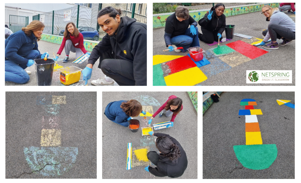 Ce samedi 27 septembre 2025, des volontaires UPS et Netspring ainsi que la direction de l’école se sont retrouvés pour une matinée d’activité de volontariat “L’embellissement des jeux d’une cour d’école d’ Île-de-France” ! L’équipe des volontaires ont repeint marelles et damier colorés pour offrir aux enfants une surprise pour cette nouvelle année scolaire!